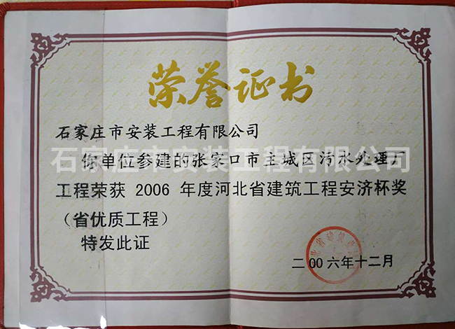 2006年度河北省建筑工程安濟(jì)杯獎(jiǎng)(省優(yōu)質(zhì)工程)