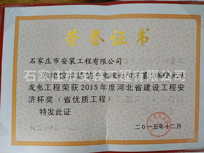 2015年度河北省建設(shè)工程安濟(jì)杯獎(省優(yōu)質(zhì)工程)